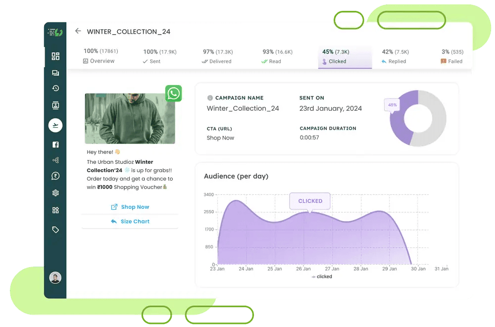 Send promotional messages and announcements to customers through WhatsApp campaigns.