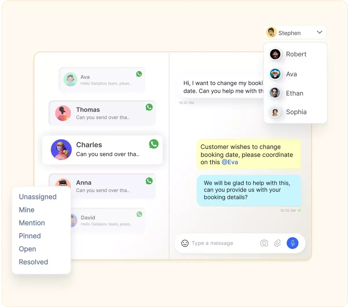 Allow your team to manage WhatsApp conversations from a single dashboard.
