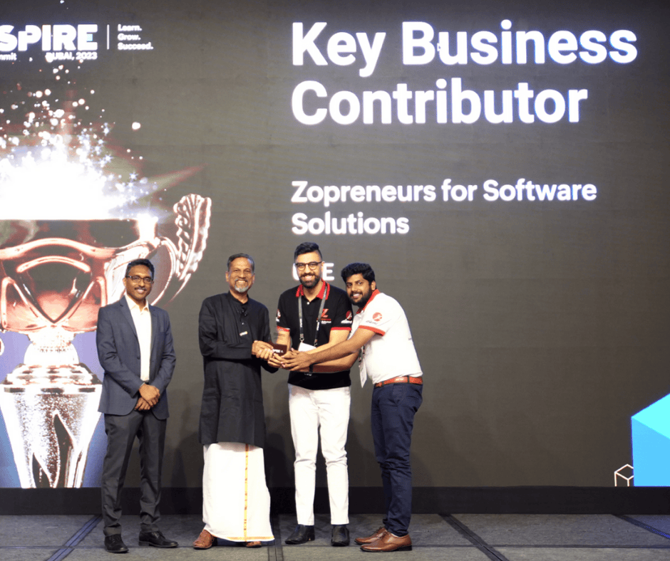 At the Zoho Inspire MEA Regional 2026 event, Zopreneurs was honored as Key Business Contributor 2025 and recognized as the Highest Value Scoring Partner globally, positioning Zopreneurs as the No. 1 partner across Zoho’s worldwide ecosystem.